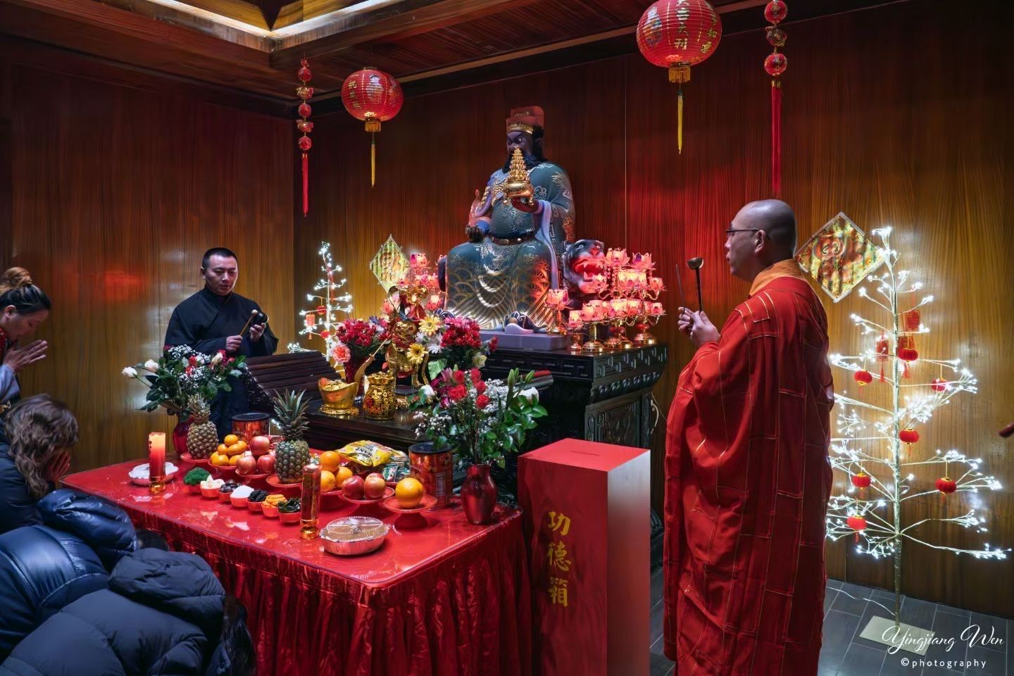 在紐約華埠的兩處道場中,我們始終珍惜能在繁忙都市之中,為大眾提供一處寧靜安穩的空間,使人們得以親近中華文化,並體驗佛教修行。2月17日大年初一,活動自上午十時開始,由法師帶領誦經祈福。誦經後,來訪大眾在義工引導下於 Canal Street 道場外依序排隊,敲鐘祈福,並領取象徵吉祥如意的紅包。紅包內裝有多樣寓意富足與圓滿的小物,包括米、硬幣、蘋果、花生與橘子等。期間亦備有齋食,由義工用心準備,供來訪大眾隨喜享用。